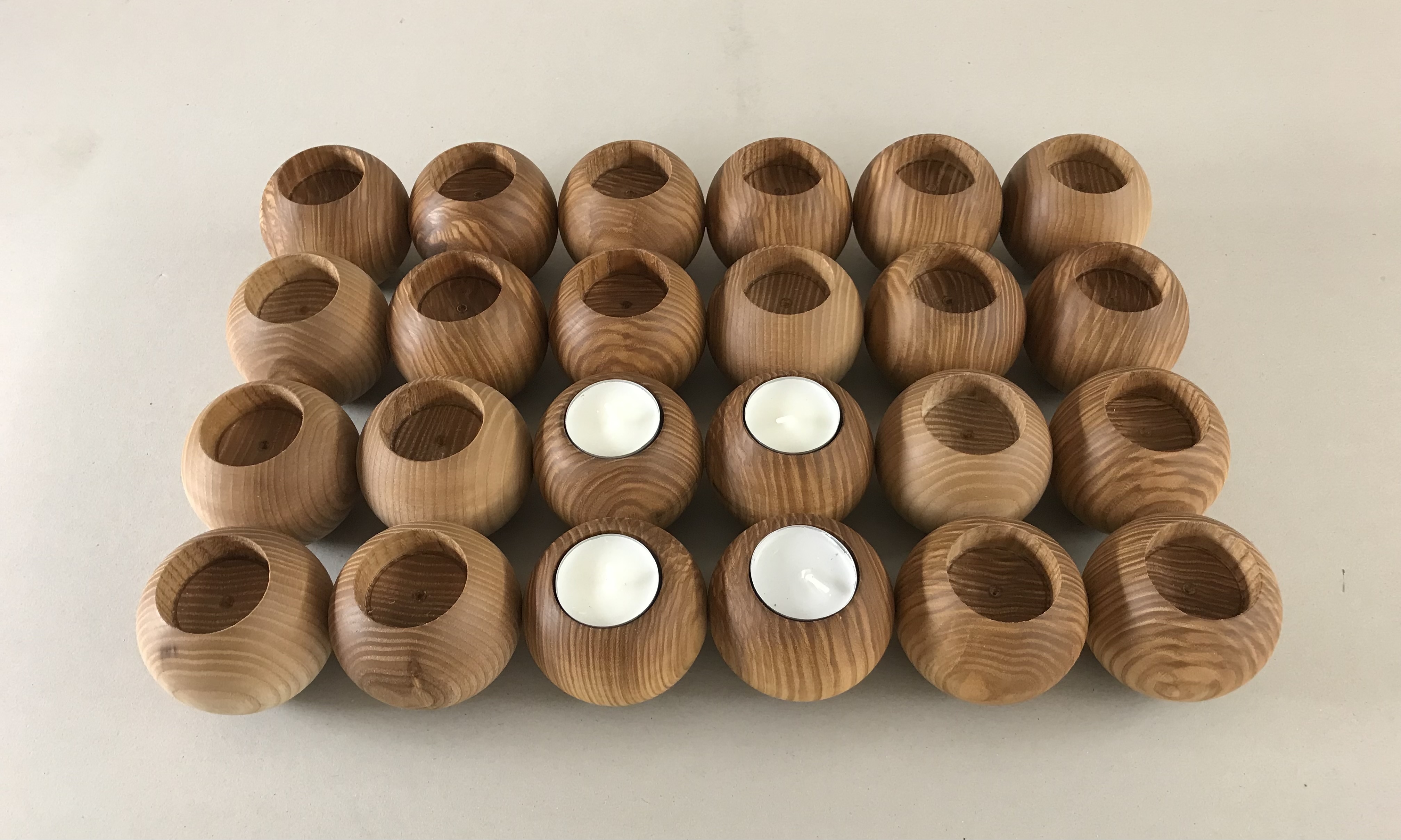 Ein Kugelobjekt - nutzbar als Kerzenständer für Teelichter oder als Tischuntersetzer für heiße Gefäße.