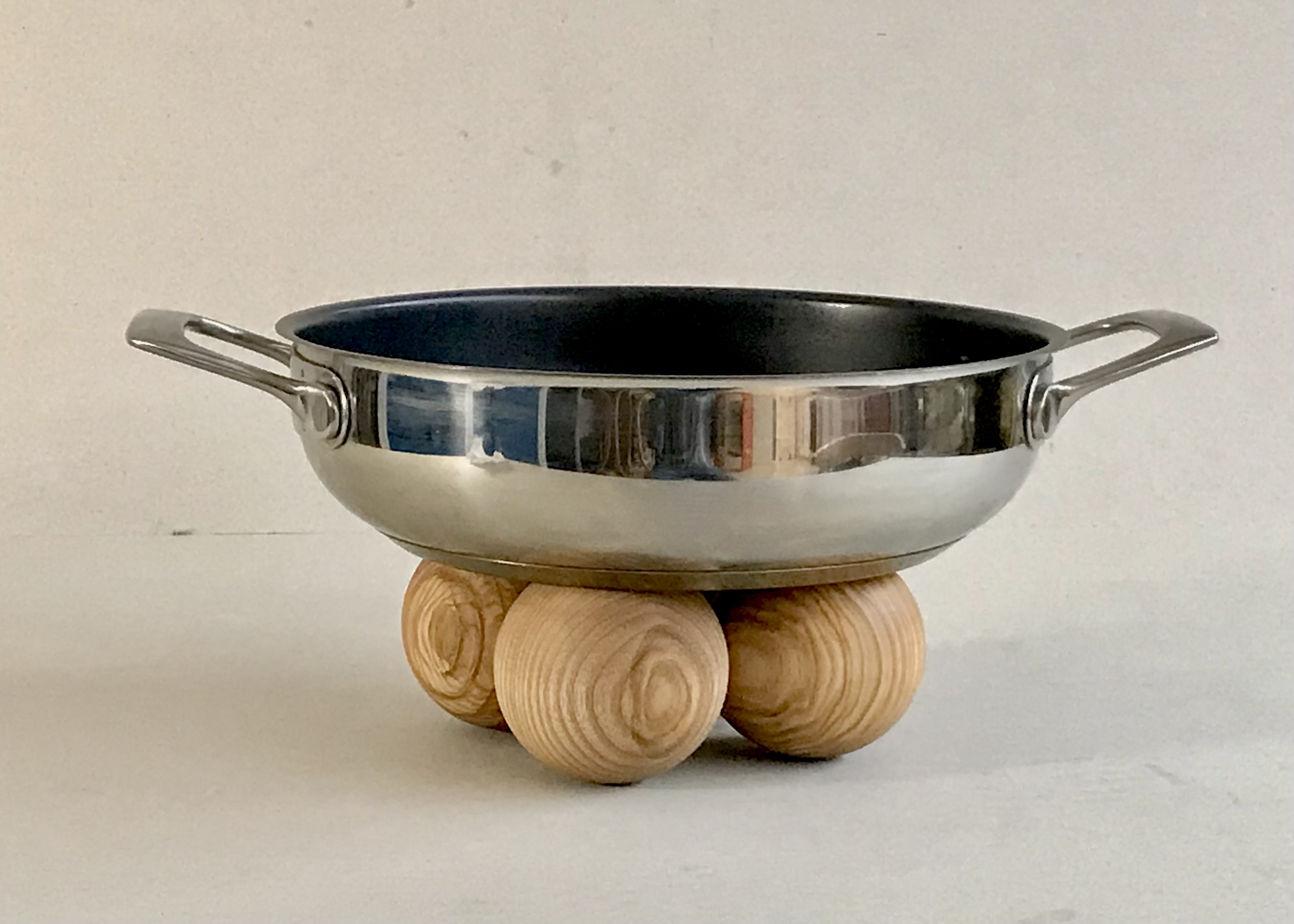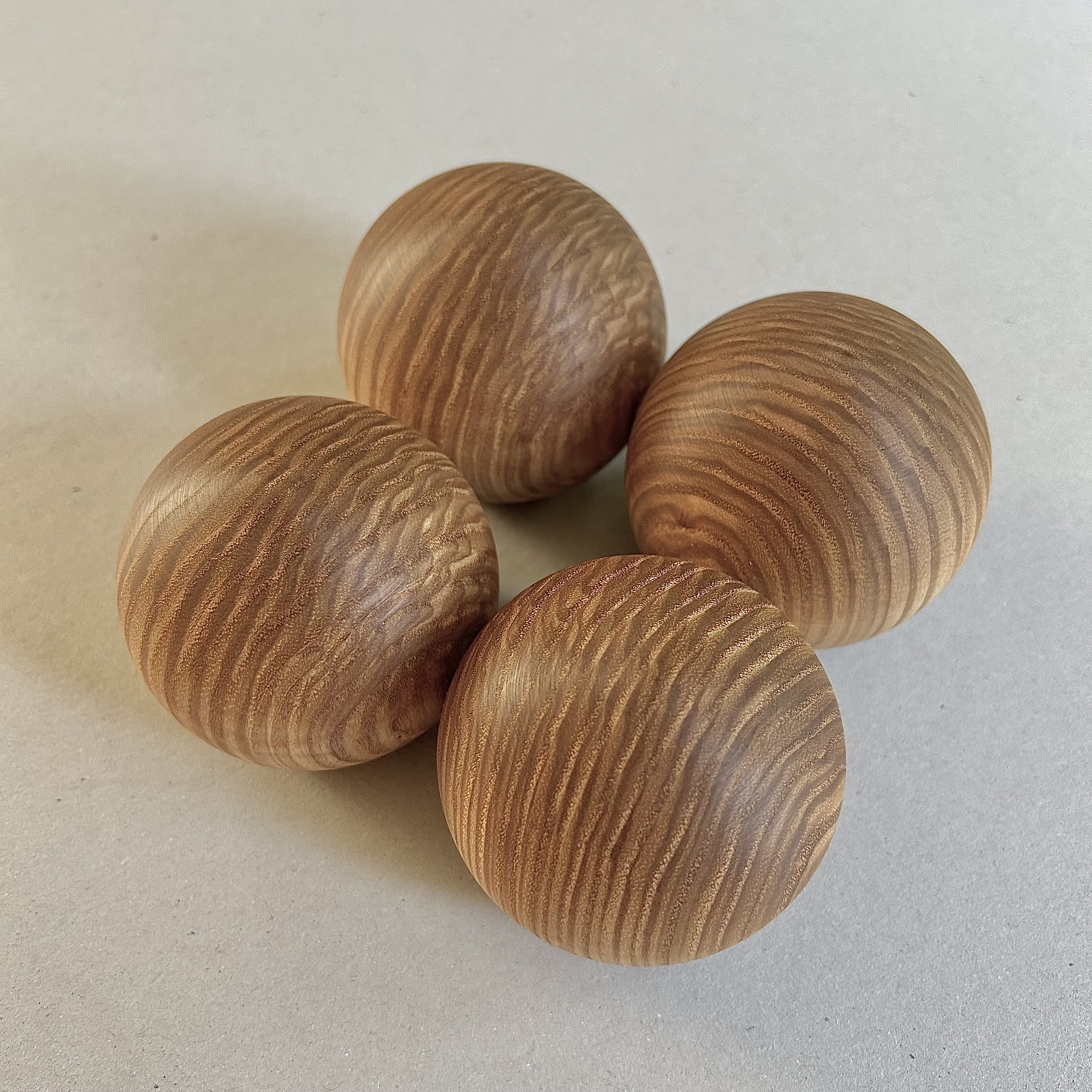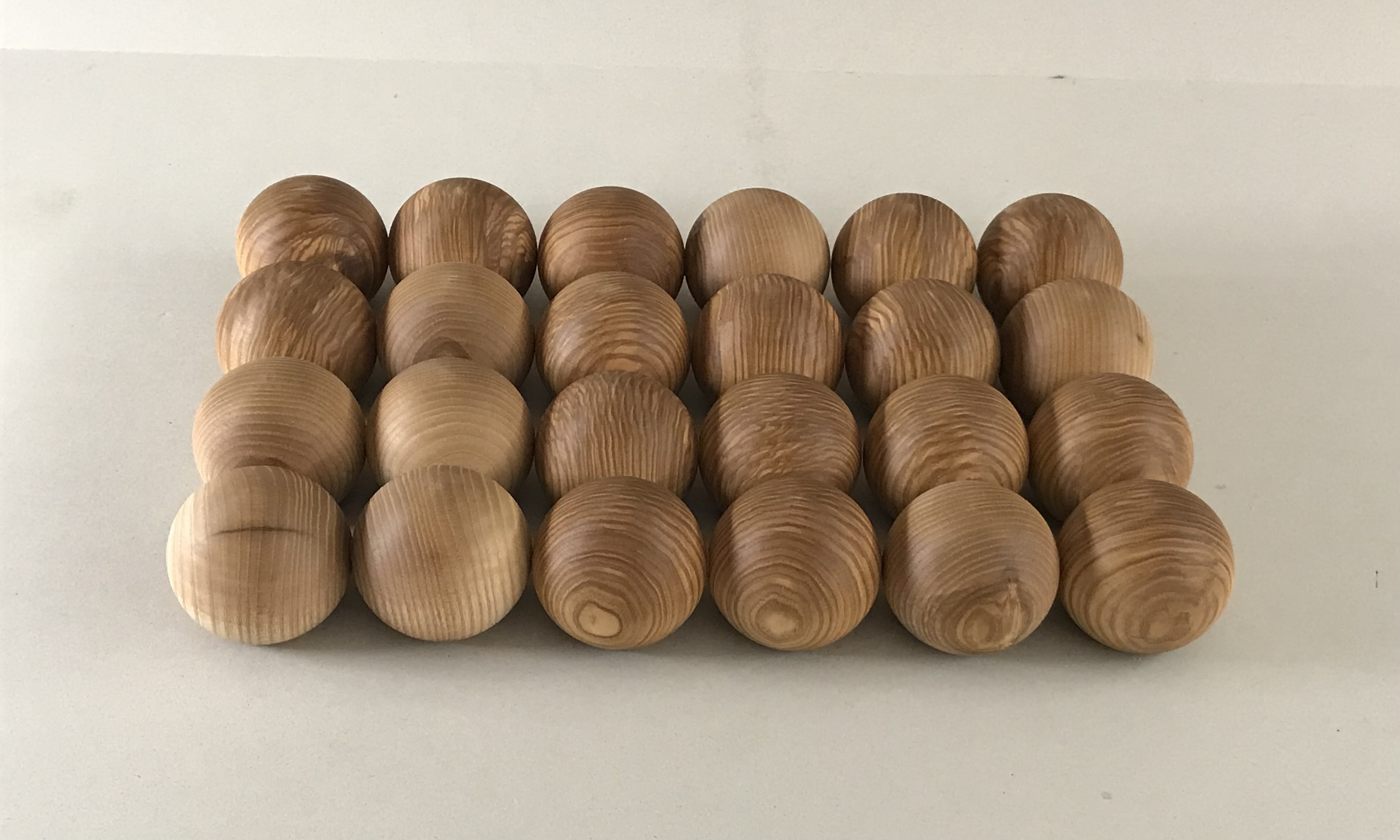 4 Kugeln aus Eschenholz, ø 72 m, geölt und mit 4 Dübeln lösbar verbunden